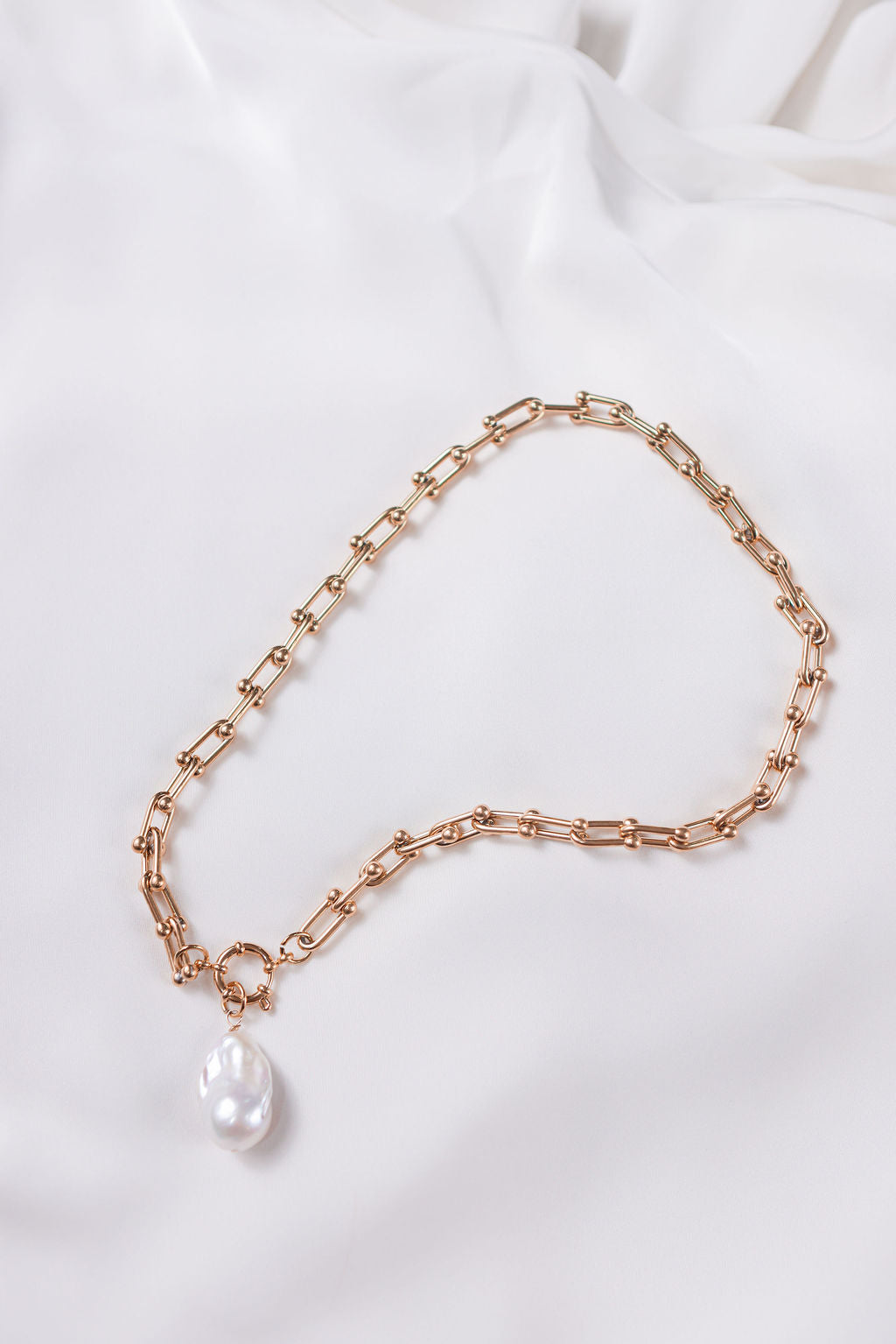 Each pearl is beautifully unique, showcasing organic curves and lustre that make every necklace one of a kind.