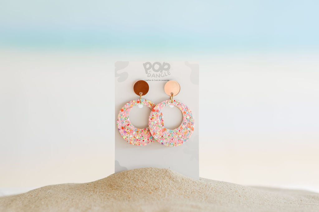 A perfect blend of earthy charm and modern elegance, our Pink Sparkle Hoop Earrings are crafted from lightweight leather for a natural yet stylish look.