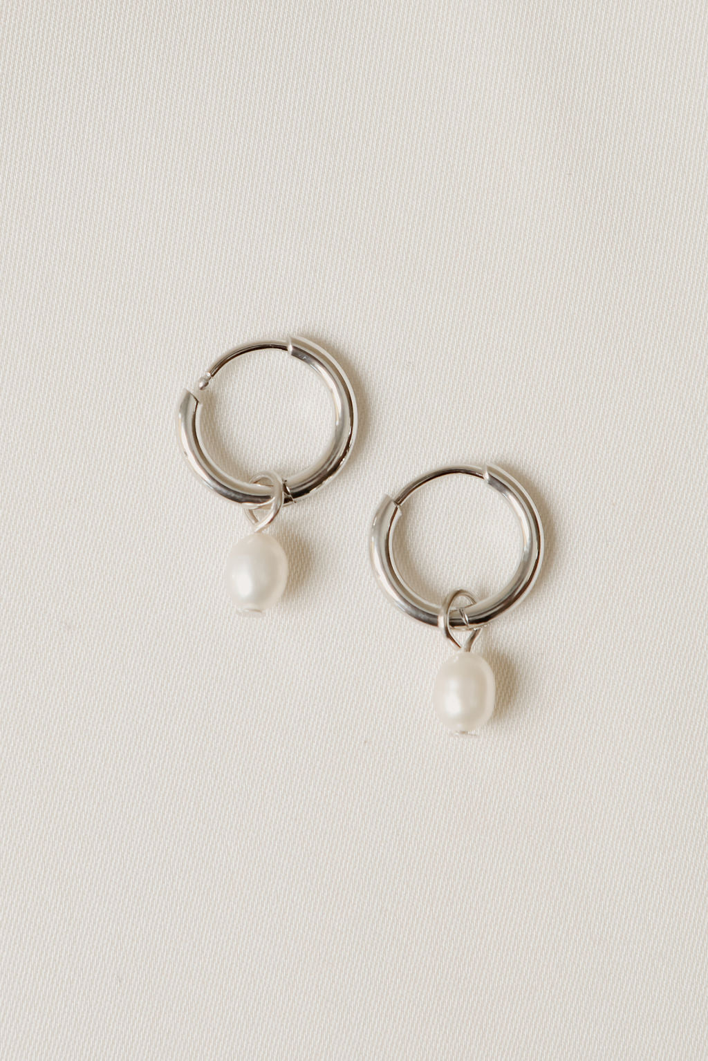 Stainless Steel Hoops with White Freshwater Pearl | Waterproof & Hypoallergenic