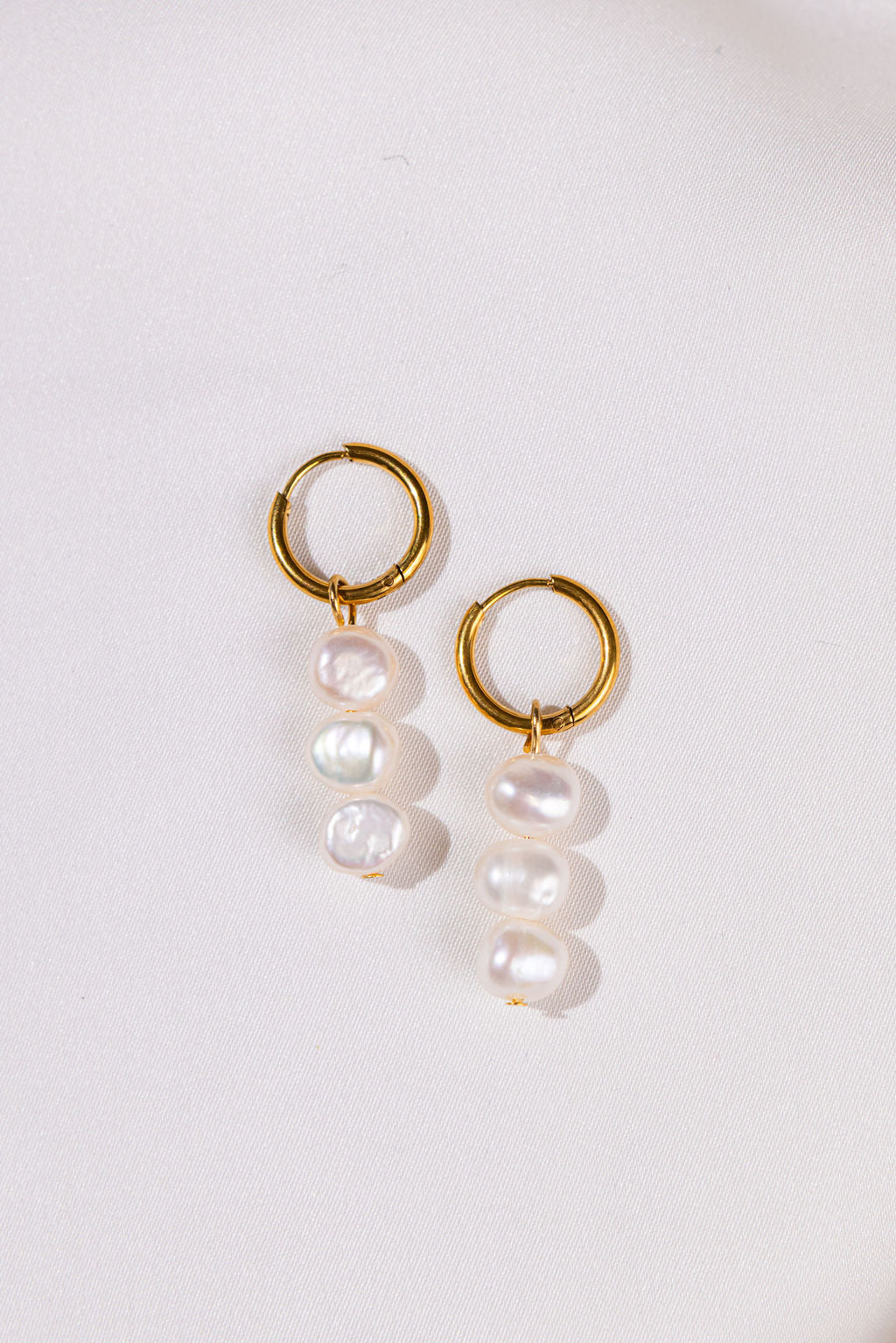Designed for effortless versatility, these dainty pearl drop earrings are perfect for everything from casual brunches to elegant evening events. The warm gold finish paired with the timeless pearl creates a look that is both sophisticated and modern.