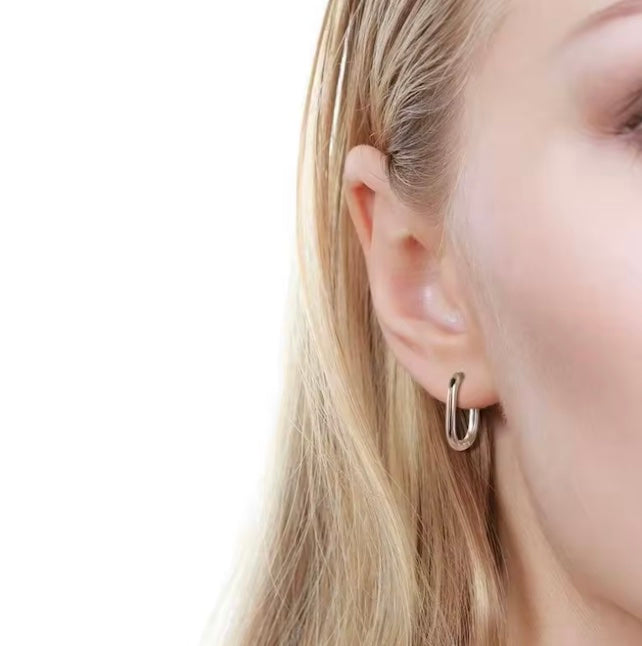 Sleek and modern, the U-Shape Mini Hoops are crafted from 925 sterling silver, available in gold and silver. Lightweight and comfortable, they’re designed for sensitive ears and effortless everyday wear.